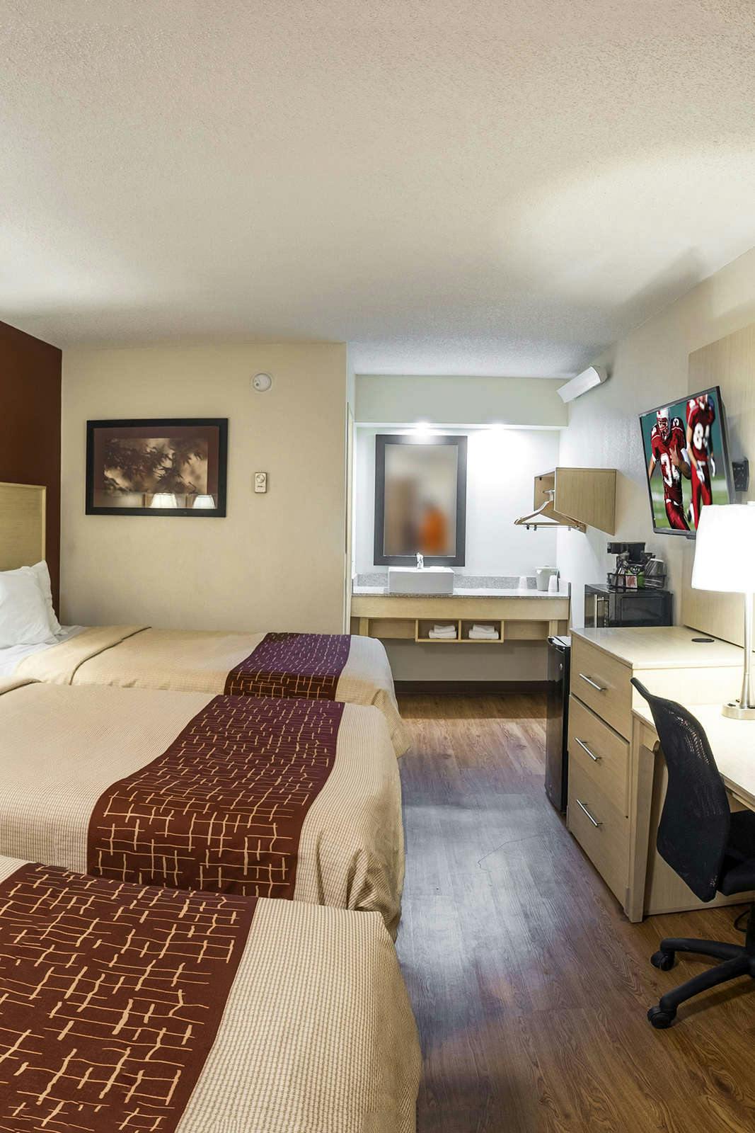 Guest rooms at red roof inn nashville north goodlettsville feature a modern interior.
